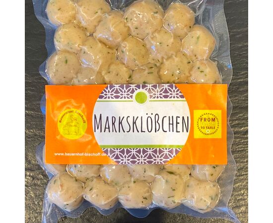 Selbst gemachte Markklößchen mit dem Mark aus unseren Rinderknochen. Von Hand gerollt, lecker & fein im Geschmack.